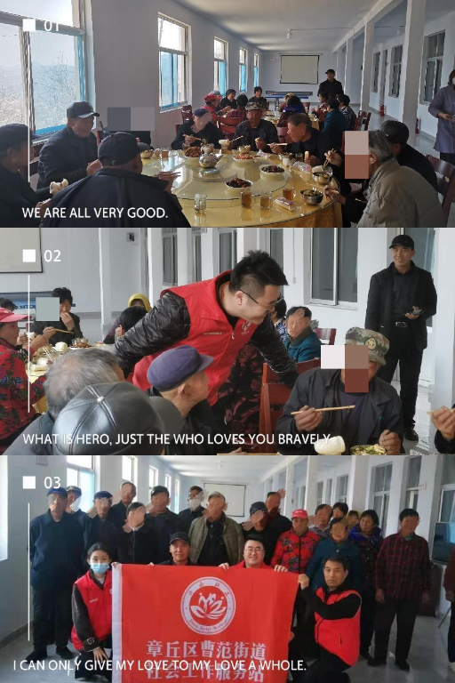 3月4日上午,2023年章丘区“长者互助食堂”志愿服务项目启动仪式在龙泉大厦东广场举行,标志着章丘区“慈善+社工+志愿者”新型服务项目正式启动。之后曹范社工站社工和生命树社会工作服务中心的志愿者带着物资一同赶往曹范庙岭村幸福院进行助餐活动。