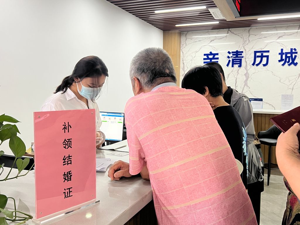 为解决居民早期婚姻登记信息不全、结婚证老旧遗失等问题,同时考虑到社区老年居民行动不便等情况,9月6日-7日,华山街道社工站在区民政局的指导下在华山街道便民服务大厅开展补领结婚证活动,让群众在家门口即可办理“爱的证照”。