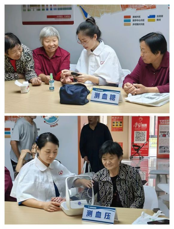 讲座结束后,医护人员和社工们还为老人们提供了血压和血糖的测量服务。分泌科护士长张维霞与荆美林老师细心地为每位老人解读测量结果,并根据个体情况给出专业建议,帮助老人们更好地了解自己的身体状况,制定出科学合理的饮食计划。社工们则在一旁维护秩序,确保测量工作的顺利进行,他们的细致关怀让老人们感受到温暖和重视。