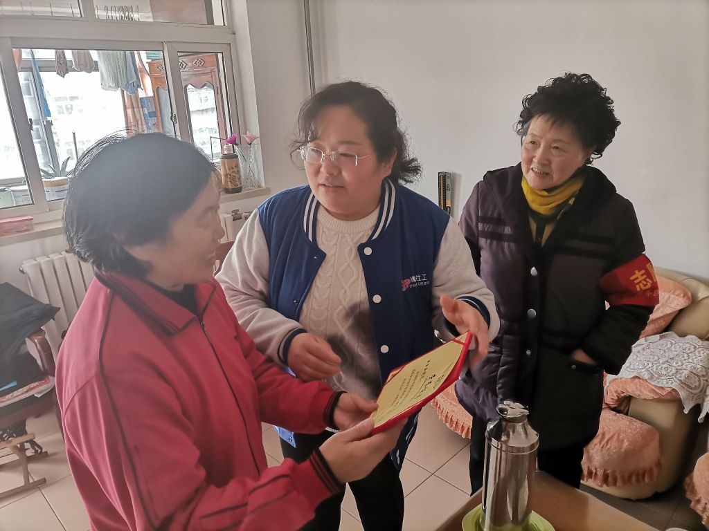 来到段老师的家里,段老师非常热情的欢迎我们的到来,社工及社区志愿者仔细询问了段老师的家庭生活情况、身心健康状况以及其他与生活方面有关的困难,社工经了解得知段老师的精神状态良好,但身体方面因疫情影响而非常不稳定,时不时还经常咳嗽,社区志愿者李老师根据自身的经验向段老师推荐了一系列有效治疗方法,同时社工站社工鼓励段老师要继续保持着积极乐观的心态,增强克服一切困难的信心与勇气,争取身体早日康复,尽快回归太极拳队伍,有需要及时联系社工站,此外社工向段老师介绍了接下来社工站将要组织的各项活动,希望段老师能够在身体恢复后根据自身喜好选择性参与活动,走访临近结束时社工为段老师送上了慰问品及荣誉证书,表达了社工站对服务对象的关怀。