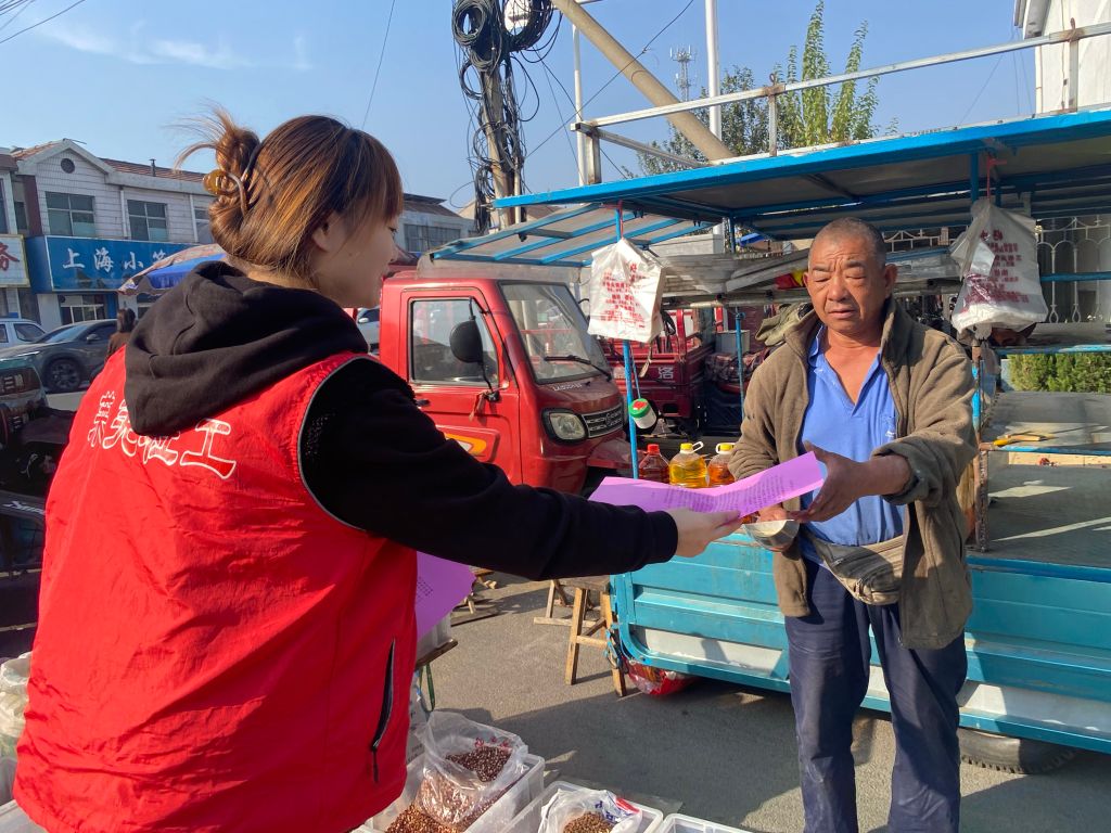 社工和民政办工作人员前往人群最密集的牛泉大集,向村民发放“移风易俗倡议书”宣传页,社工用通俗易懂的语言讲解了什么是移风易俗和推进移风易俗的意义,用抵制高额彩礼、拒绝铺张浪费等具体实例,引导群众转变思想观念,在日常生活中崇尚科学。在谈论高额彩礼的时候,村民们热烈讨论,纷纷表示:爱情贵在真心,家庭美在和谐,要树立正确的爱情观、婚嫁观,自觉抵制婚姻大操大办、盲目攀比的不良习气。