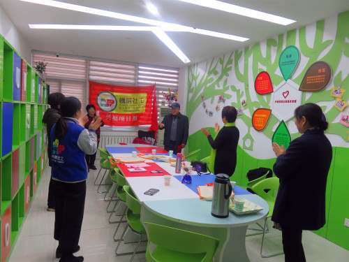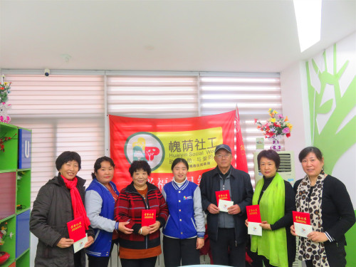 活动伊始,项目组社工简单的介绍了项目组成员,并引导志愿者自我介绍,让大家相互熟悉减少陌生感,紧接着社工给每位志愿者送上了一份感恩贺卡,表达节日的问候。然后,项目组社工与志愿者一起回顾了项目组及志愿者一年来开展的工作和活动;交流过程中项目组社工引导志愿者介绍各自参与社工协助活动内容的感想、体会及建议。随后,志愿者为感谢项目社工,特意为社工献歌两首,现场一片欢声笑语。最后,项目组社工给志愿者颁发志愿者证书并拍照留念。