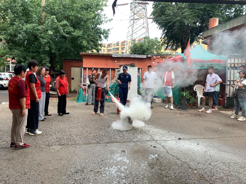 讲座结束后,社工和社区工作人员组织居民群众观看消防灭火模拟演练。在广场空旷地带设置的模拟着火点,消防员现场演示灭火器的使用方法,居民群众踊跃报名体验,在消防员指导下正确使用灭火器灭火。大家纷纷表示,现场演练过程提高了自救能力,受益匪浅。
