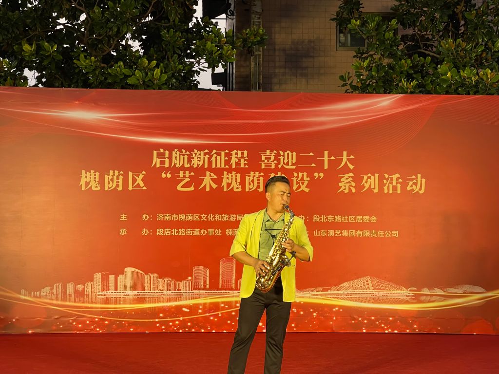 晚上七点,晚会在孔村小区关帝阁广场隆重上演,社区文艺爱好者、社区社会组织舞蹈队和演员们同台献艺。伴随着激昂的音乐,一曲《壮志在我胸》拉开晚会序幕,节目形式多种多样,精彩纷呈,以群众喜闻乐见的歌曲、舞蹈、萨克斯演奏、朗诵、舞狮等艺术形式,全方位展现新时代新社区群众的幸福感、安全感,艳丽的服饰、优美的舞蹈让前来观看的居民目不睱接。