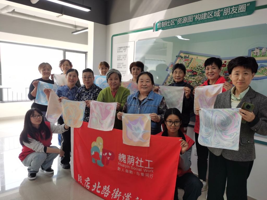 10月24日,段店北路街道社工站成功举办了“指尖灵韵,匠心艺萃”——心灵疗愈工作坊的第三次小组活动,本次活动主题为“水拓非遗,丝巾溢彩”,旨在引领小组成员领略非遗水拓画的独特魅力,制作精美水拓画丝巾,锻炼居民的动手能力和创造力,让居民在创作过程中发现自身价值,提升自我认同感和自信心。同时帮助居民建立起相互关心、支持的社交关系,促进身心健康,提升生活质量,让居民的晚年生活如绚丽的水拓画丝巾一般,绽放出别样的色彩。