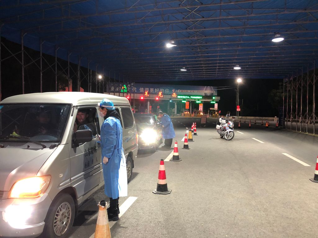 19:00,“您好,您是从哪来的?去过哪里?请您出示健康码、行程码和48小时内的核酸检测报告”。在莱芜西高速路口,社工一边引导车辆停靠,一边重复说着。这些话她们一天不知道要重复多少次,不断对外地返济人员讲解防疫政策,声音沙哑却从未说过累。近期疫情形势紧张,执勤人员严重不足,天气非常寒冷,社工们依然站好防疫岗,共同守牢莱芜区的西大门。