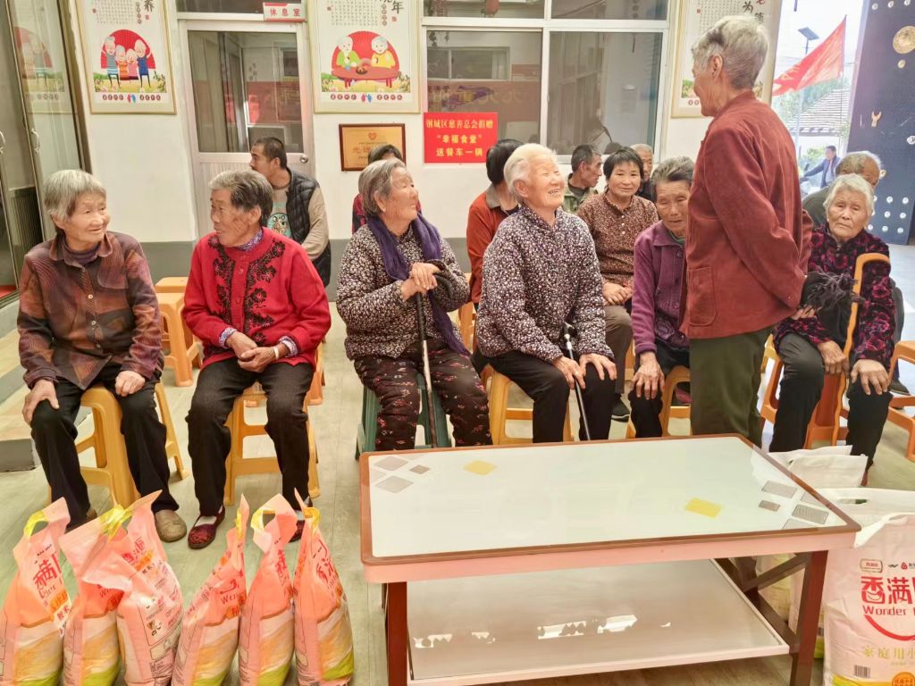 社工和钢城志愿者协会志愿者一行,到尚家峪村和仙人桥村幸福食堂包水饺。活动邀请村内身体硬朗的老人参加,社工边包水饺,边以拉家常的方式,和大家一起重温了重阳节的来历,回顾了重阳节“赏菊饮酒、登高望远”的习俗、让大家再次感受重阳节倡导的尊老敬老的重大意义。现场洋溢着热烈、温馨的氛围,老人们的脸上满是幸福的微笑。活动还邀请部分老人到现场领取节日慰问品。