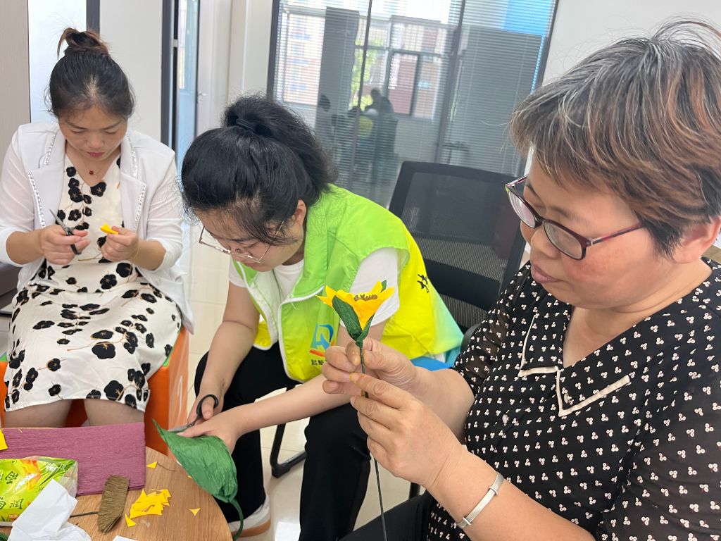 传递温暖,从我做起,为丰富辖区居民社区文化生活,提升辖区居民志愿服务意识,6月30日,大桥街道社会工作服务站开展“朵朵葵花向阳开”手工志愿服务活动,链接辖区居民志愿者资源,为辖区困境儿童群体制作纸艺向日葵,为困境儿童群体送去温暖与支持。