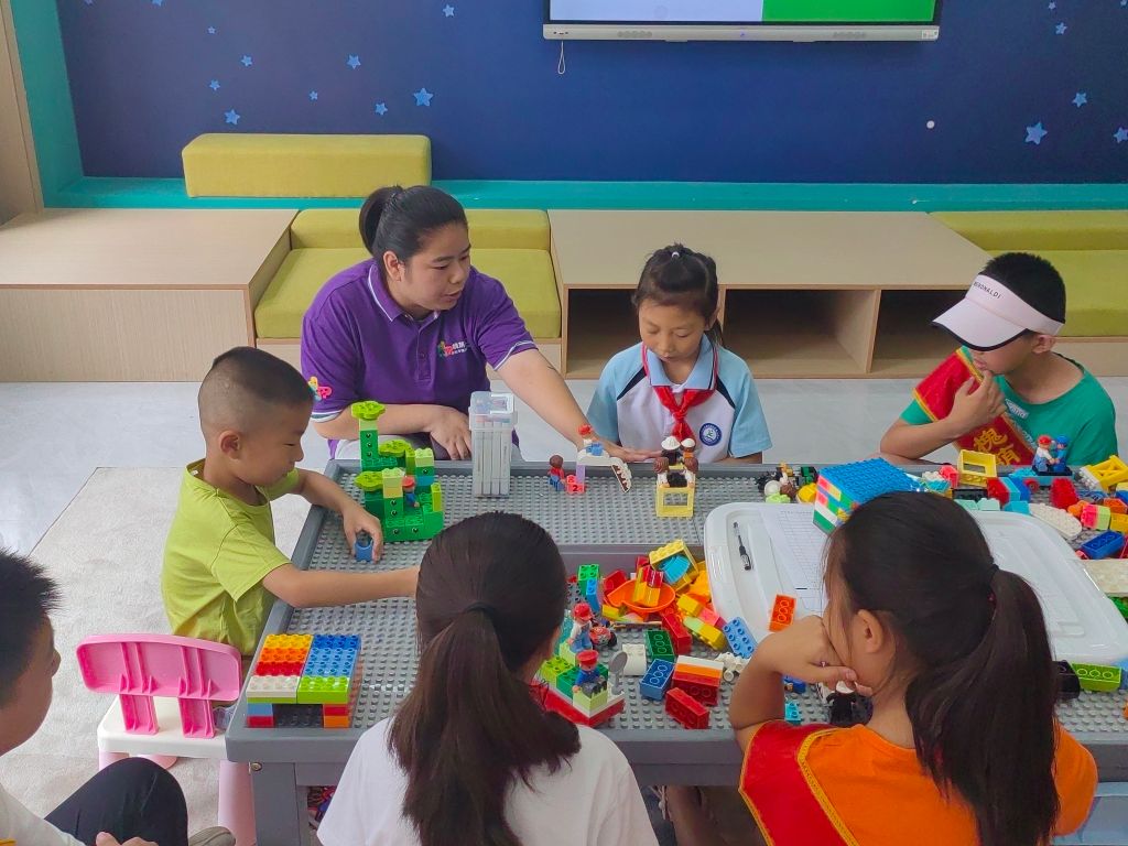 吴家堡街道社工站作为社区发展资源链接平台,积极链接社会慈善资源,利用乐高积木,协助儿童在“玩乐中成长与发展”。社工设置主题拼搭环节,儿童发挥想象力、创造力拼搭“我的好朋友”和创设“我与好朋友友好相处”场景,调动肢体与大脑,通过情景再现加深自己对好朋友的印象,既富有挑战性,又趣味性十足。期间鼓励儿童积极表达、积极分享,帮助儿童加深对友谊浅层面的认识和了解。