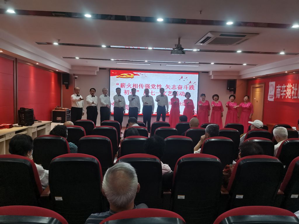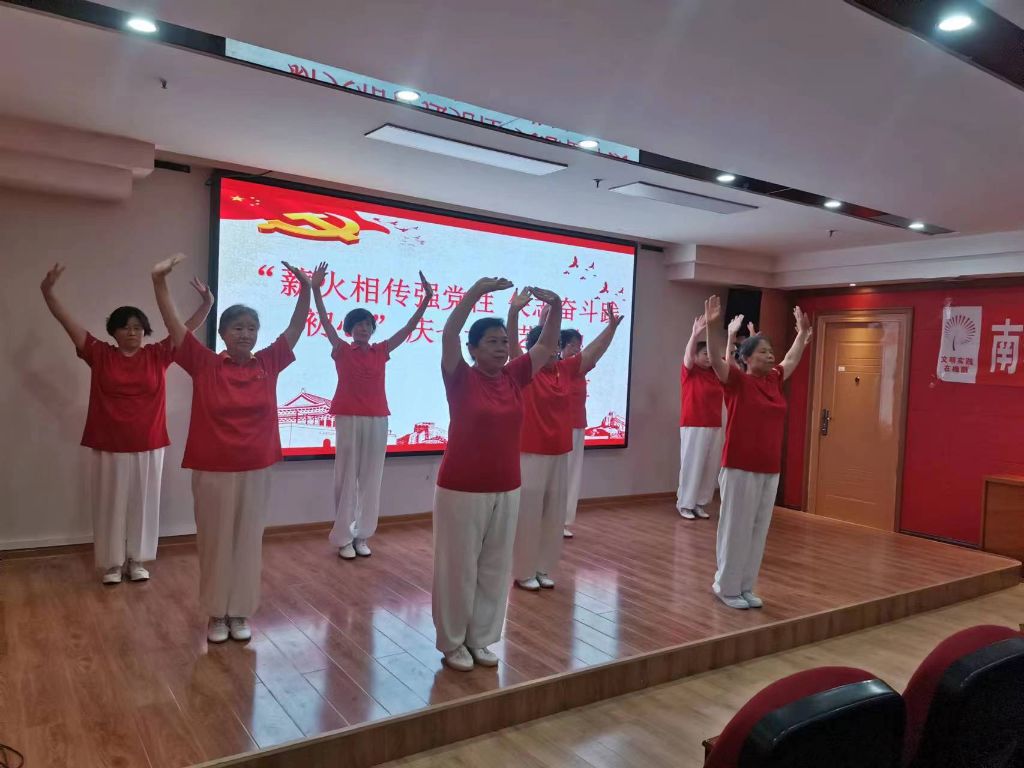 6.29日上午,应南辛苑社区居委会的邀请,社工站组织“辛东悦”合唱团、“拳心拳力”太极拳、两支队伍助演参与南辛苑社区庆七一主题活动。有了日常练习及展示经验的积累,队伍准备精心筛选准备了《天边的骆驼》、《鼓浪屿之歌》、《导引养生功十二法》、《灯火里的中国》等不同形式的节目,社工站也通过组织队伍的参与,不断引导其进一步规范发展,不断提高队伍组员能力及队伍整体专业水平素质;同时此次活动社区居委会还准备了安全知识学习、光荣在党50年勋章颁发等环节,节目及知识学习相结合的方式充分烘托了此次庆七一主题活动氛围,让社区老党员与街道社工站社工、社区自组织队伍、社区居委会陪伴下一起过一个有意义,别具一格的建党节。