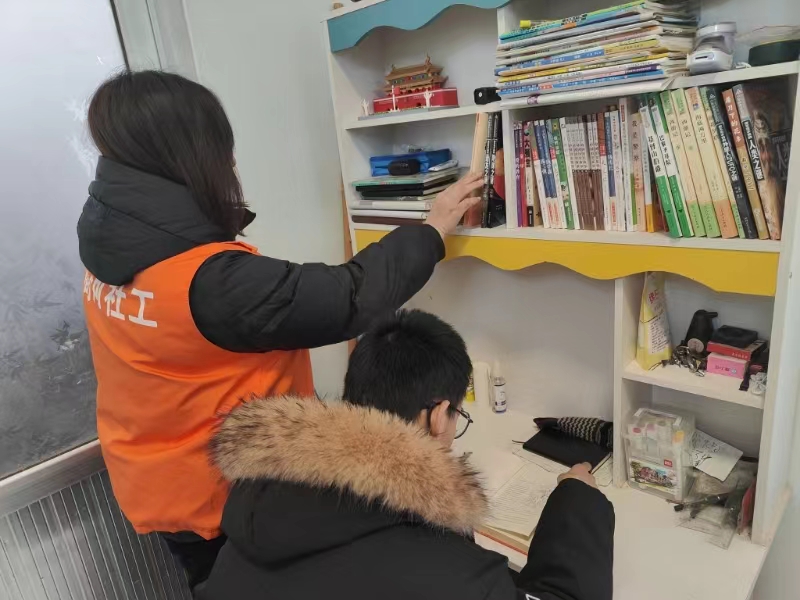 在走访过程中,社工小侯给孩子们整理了床铺、书桌等卫生,了解孩子生活学习状况、成长中最需要纾解的困难及家庭中遇到的问题,帮助孩子们增强自信心,提升心理能量,用新面貌迎接学习和生活中的新挑战。