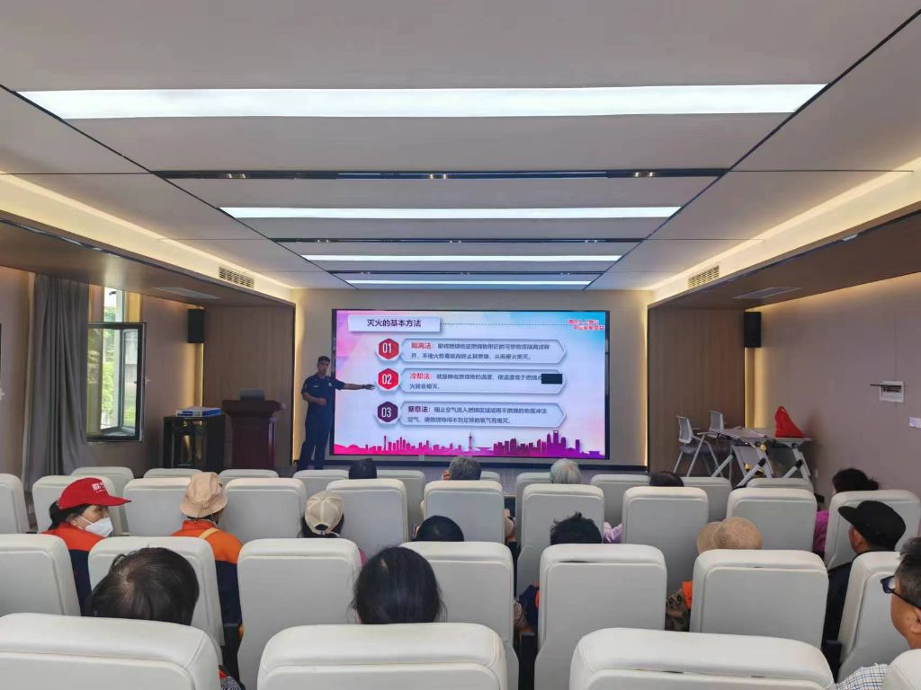 活动中,王班长凭借其多年的消防工作经验,通过生动的案例分析、直观的图片展示以及互动问答等形式,深入浅出地向在场的居民及物业人员讲解了火灾的成因、预防措施、初期火灾的扑救方法以及紧急疏散逃生技巧等关键知识,同时希望社区居民围绕“三懂”、“四会”,提高自我防范能力。活动最后,王班长结合他的工作经验,明确指出了目前一些人存在的侥幸心态、大意和缺乏防火意识的问题。最后社工倡导居民能够在邻居和亲友之间进行有效的宣传和警示,使大家都能明白预防火灾的重要性。一位阿姨说道:“这个活动很好,讲的也很实用,以后可以多组织一些这样的活动。”