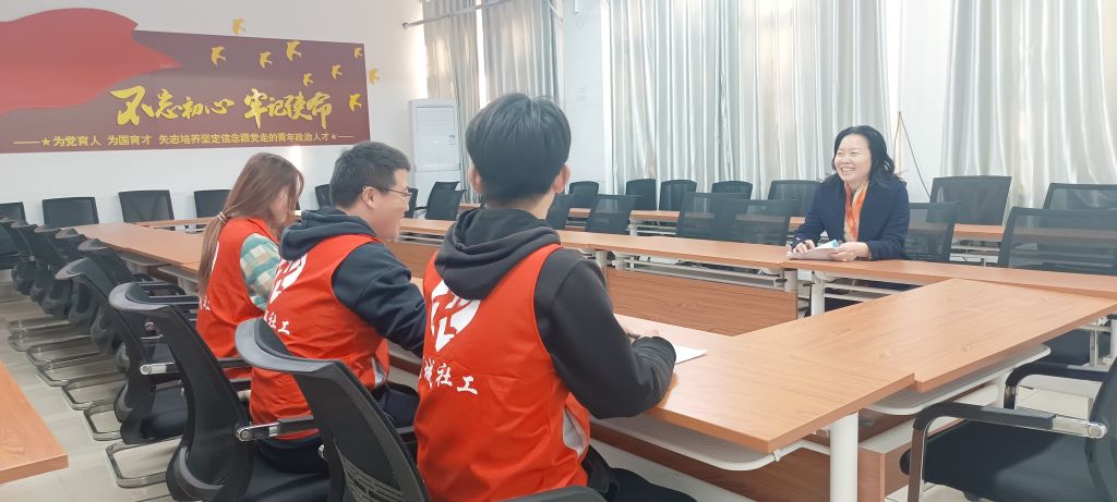 站长刘相甲向督导老师汇报了近期的工作情况,并针对项目实施、品牌打造、服务成效、实习实践、督导陪伴等方面展开了深入探讨。督导老师谈到,唐冶社工站在校社联动上具有极大优势,要进一步做好志愿服务常态化和青年志愿者的管理工作,通过资源整合,注重不同主体的作用发挥,打开工作思路,积极解决社区、居民的需求和问题。在“向前走”的同时,也要“回头看”,积极的进行工作总结和复盘研究,形成经验、模式,进行推广,突出专业性。
