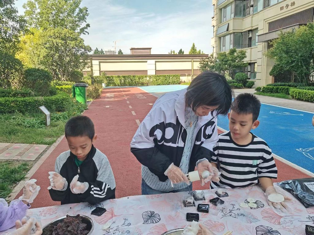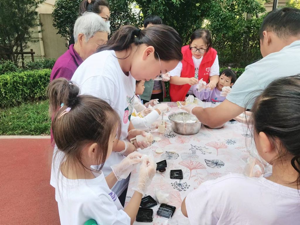 大家兴致高昂,一个个精致的月饼很快在居民的手中诞生了,大家拿着成型的月饼互相展示,拍照留念,现场一片热闹愉悦的温馨氛围。