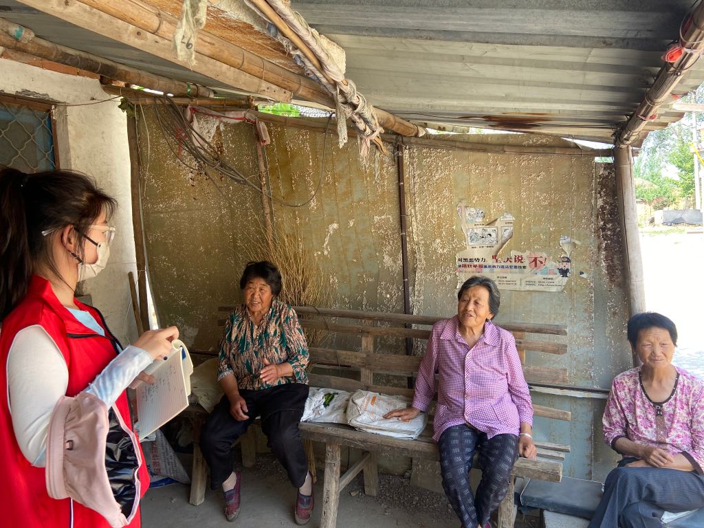此次漫步中还遇到了四个大娘刚干完农活围在一起聊天,社工站成员也加入到其中去,大娘们热切的关心道,“这么热的天到处跑累不累啊,快过来歇歇。”大娘们年龄都在七八十左右,以干农活为生,在与她们交流时发现,大部分居民很少参加社区活动,大部分时间都是与邻居闲聊或者闲逛。通过本次社区漫步,社工深入了解到周边居民的生活信息,在交流中发现居民需求,了解居民生活,为今后服务开展指引了方向。