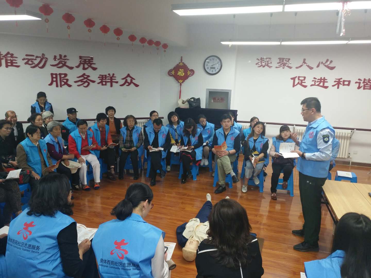 奥体西苑社区为提高志愿服务队的应急急救能力,特组织社区居民党员志愿者参加以“灯塔引领·志愿加油”主题活动。