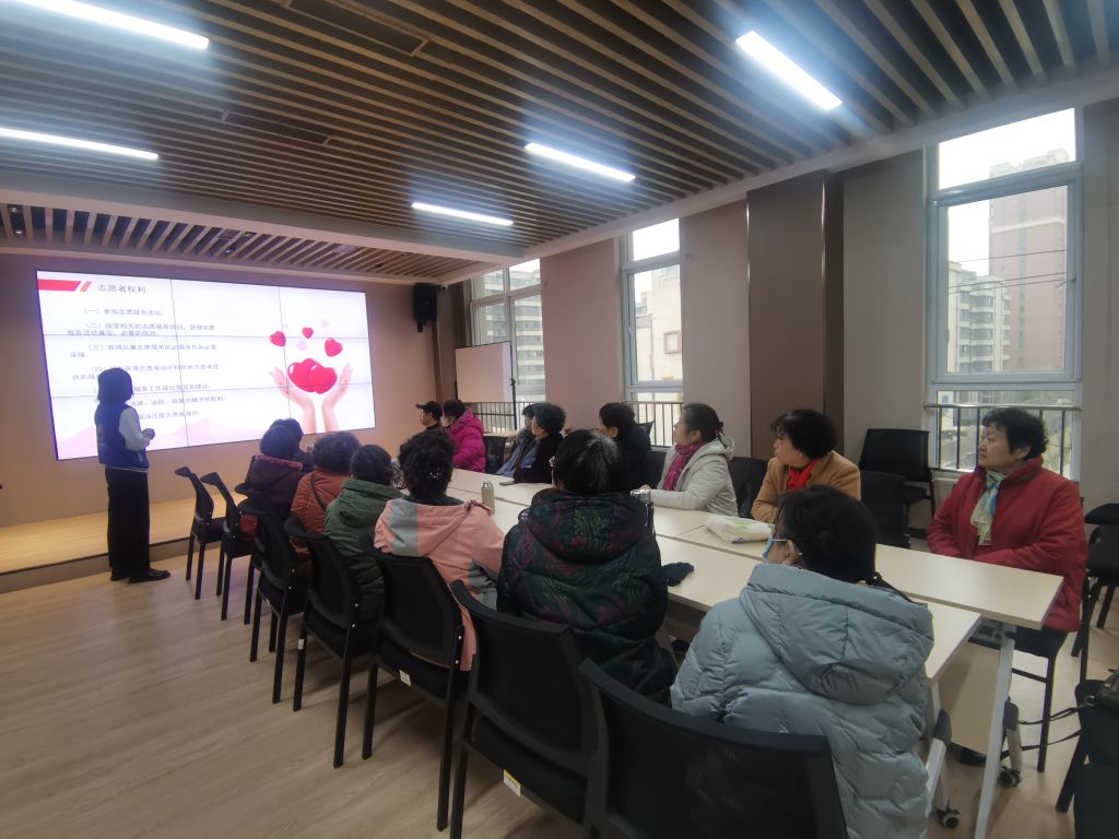 会议伊始,志愿者们共聚一堂,相互分享畅谈近期的生活状况,在简单的交涉过后,社工向到场的每位志愿者表达了新春的祝福,同时高度赞扬了志愿者们在上一年度服务中尽职尽责的工作态度。紧接着进入本次活动的主题—“从辛出发,为爱赋能”,社工采用PPT讲解及图片展示的方式一起同志愿者们共学志愿服务的相关知识,包括志愿服务标志的含义、志愿时的注意事项等等,引导志愿者们思考自己所参与的志愿服务以及未来感兴趣的志愿服务方向。