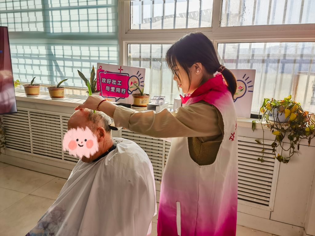 活动中社工还为有需要的老人义务理发,让老人容光焕发迎接新春的到来,工作人员还为他们送上了米、面、油等生活用品,本次活动的开展为失独老人提供了精神慰藉,疏解了他们的心理压力,拓宽了其社会支持网络,让老人们感受到了节日的关爱。