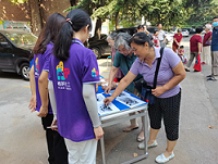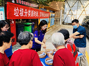经过社工前期垃圾分类知识的宣传,居民们对垃圾分类也不再感到陌生。这边厨余垃圾换积分,那边垃圾分类小游戏,居民们兴致盎然,摊位前很快围满了参与活动的居民,热情的张阿姨也自发地当起了志愿者,与社工一起为现场的居民科普垃圾分类小知识。