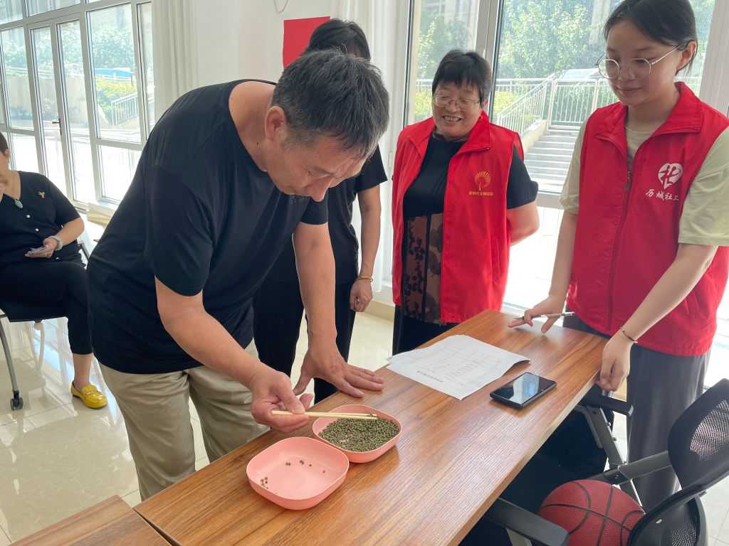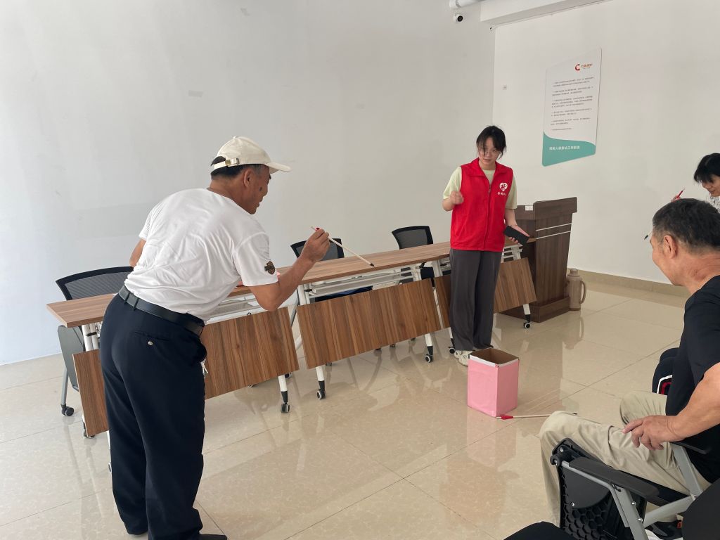活动开始前,社工引导大家签到,在简单询问他们近期生活和身体健康状况后,介绍了每个项目的规则。活动开始,社工带领大家做健康拍拍操,舒展筋骨、放松心情,做好热身运动。在社工和志愿者的带领下,大家进入趣味运动会场,此次运动会集趣味、娱乐、竞赛于一体,通过参与“欢乐投壶”、“珠来运转”、“形影不离”等趣味项目,锻炼残疾人朋友动手动脑、手眼协调和团结协作的能力。活动现场,氛围十分热烈,大家轮番上阵,体验着竞技的紧张,同时也享受着运动的快乐,现场欢呼声、助威声不断,热闹非凡。活动结束后,志愿者为他们送上比赛奖品。
