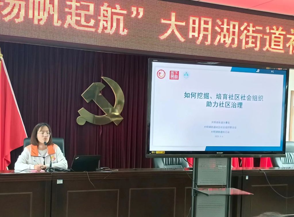 近日,为提升大明湖街道社区工作人员的综合素质和服务能力,打造一支政治素质、业务能力过硬的优秀社区工作人员队伍,促进社区各项工作创新发展,大明湖街道启动“蓄力奋进 扬帆起航”大明湖街道社区工作者培训班,社区两委和社区工作者共计50余人参加培训。社工站积极参与其中,一方面协助培训课程的设计、开展和评估反馈工作,一方面参与分享社区社会组织知识、社工考试学习等相关知识。