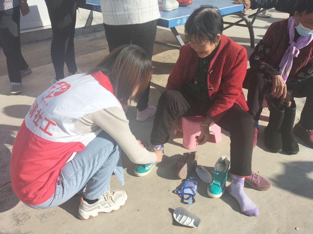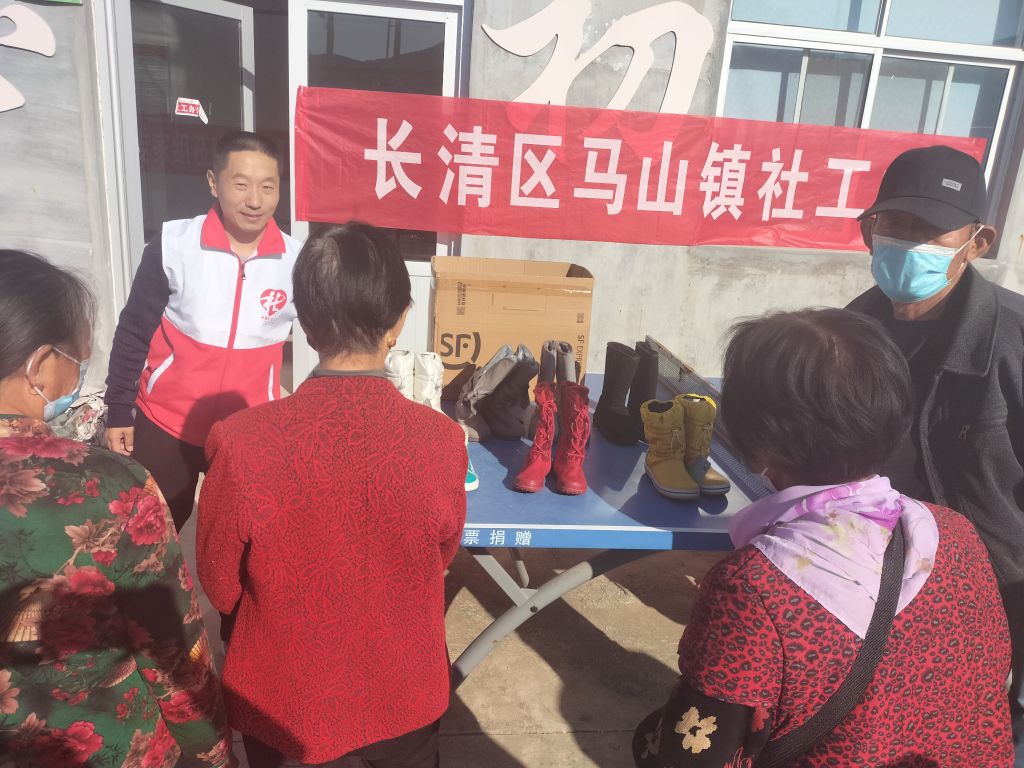 为辖区特殊困难老人开展送温暖行动,帮助困难群众温暖度过寒冬。马山镇社工站链接志愿者王老师捐赠20双崭新棉鞋。在大核桃园村开展“棉鞋送温暖,情暖老人心”活动。