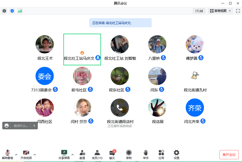 第二阶段,由槐荫区段店北路街道社工站社工王术为大家介绍“五社联动”活动具体实施方案。本次活动将以段店北路街道辖区内低保家庭为重点服务人群,发挥“五社”中不同参与主体的优势和作用,为辖区内低保家庭提供物质及精神支持,开展“物质+服务”帮扶,满足辖区内低保家庭的实际需求,营造“关注民生兜底保障服务,关注辖区弱势社群”的良好氛围。线上活动开展期间,各村社区对“五社”参与细节、联动作用如何发挥、各“社”职责分工等层面进行商讨,并与街道社工站确定了活动开展的相关细节和时间节点,为后期有序推动“五社联动”活动开展奠定了基础。