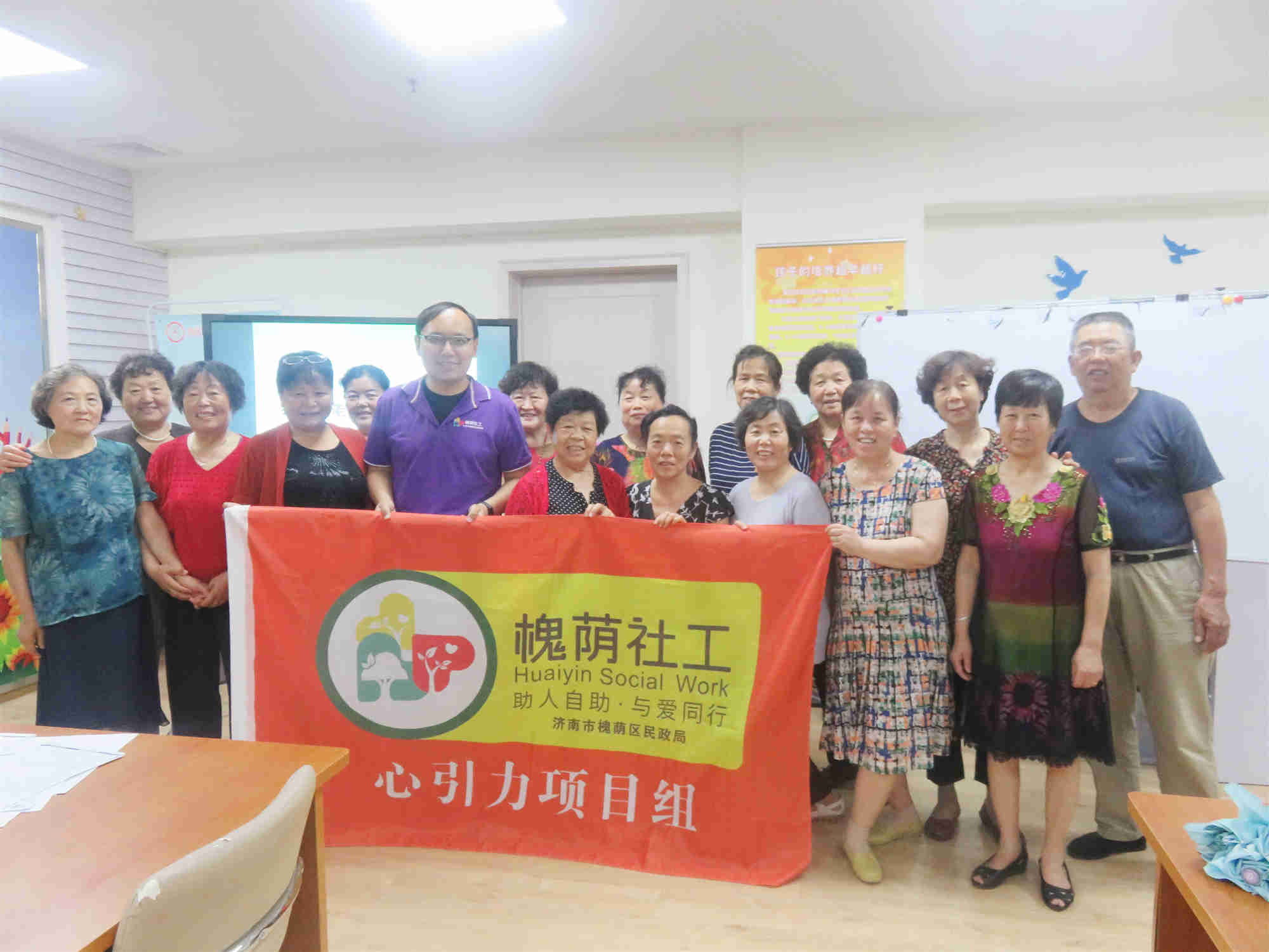 2019年6月11日,心引力社工项目组在南辛庄街道办事处二楼开展小组领袖发展会和第十八期志愿者协商会,本次会议分全天进行,共有6名小组领袖,17名老年志愿者参加。