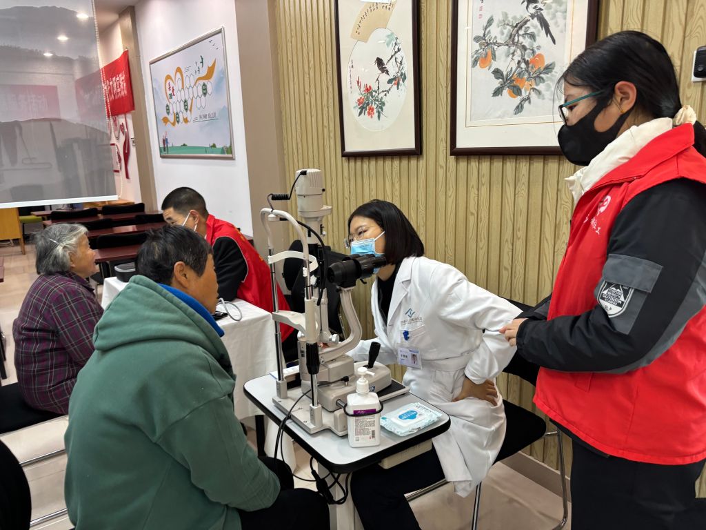 活动现场,前来问诊的居民络绎不绝。医生为前来咨询的居民进行了免费的视力检测以及裂隙灯检查,并细致耐心地解答老人们提出的关于眼部疾病方面的问题,受到老人们热烈的欢迎与广泛好评。医生们用通俗易懂的语言向老年人介绍白内障等眼科疾病预防事项及眼部护理的基本知识,对患有眼疾的居民提出了有针对性的治疗建议。社工协助医生对有进一步治疗需求的老人进行信息登记,并维持好现场秩序,让每一位居民都能够享受到专业的医疗服务。