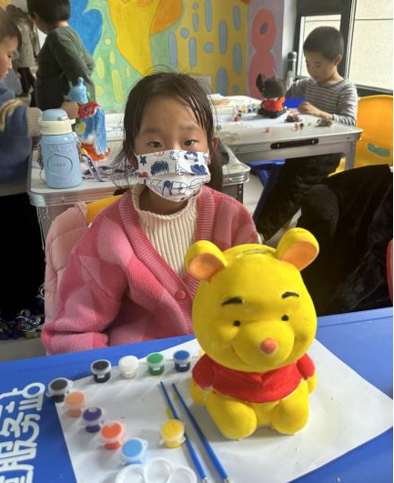“花花班”儿童兴趣社团 ——起步区崔寨街道社工站开展“娃娃穿新衣” 石膏娃娃彩绘活动