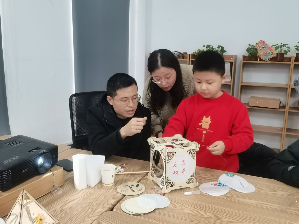 伴随着欢声笑语,手工灯笼制作活动也热热闹闹地开始了。小朋友们化身为一个个小小创作家,挥想象力,自由搭配色彩,用颜料在灯罩上作画,兔子、圆月、星空……在各种各样鲜艳的颜色交织下,一盏盏各具特色的花灯诞生了。“这次活动很有意义,孩子们都很喜欢。”居民梁阿姨期待下次还能多多参与各项活动。