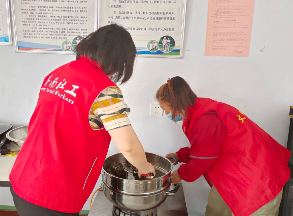 为了让老人们切身感受节日的氛围,颜庄街道社工、志愿者、社区工作人员和老人们一起准备了粽叶、大枣、糯米等食材,一切准备就绪,大家围在一起忙碌起来,不一会儿,一个个形态各异的粽子便呈现出来。