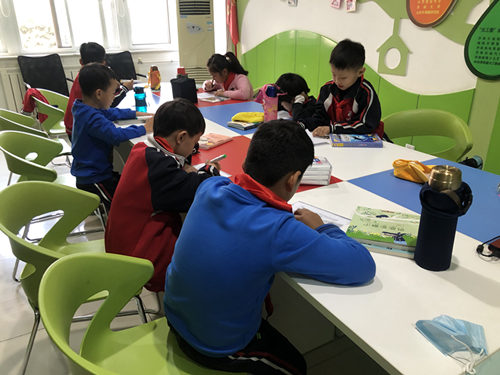 项目组社工为每一位来参加活动的成员测量了体温并进行登记,活动开始后,社工首先向小组成员提问“大家喜欢海洋吗?”小组成员异口同声的回答道“喜欢!”社工又问道“这么喜欢大海,那大家都知道有什么海洋生物吗?”大家听到这个问题之后积极的举手回答,社工引导组员们按顺序一一发言;之后社工为成员们播放了纪录片“海洋”,大家一边看着一边讨论着,纪录片的内容激发了成员们对海洋的好奇和想要探索的兴趣;随后社工给大家分发了今天需要阅读的图书资料,引导大家将不认识的字进行标注,然后社工带领着大家一起朗读;经过四次活动的举办,小组成员们也都互相熟识了,个别组员年级低识字少,年级高的成员就积极主动地帮助他们,不会的组员也虚心学习,形成一种互帮互助的阅读氛围。