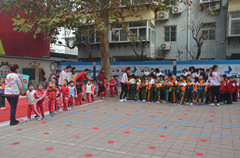 为了保证活动的安全进行,槐荫民政社工与社区志愿者、公益岗一起变身“安全员”,在各个十字路口为小朋友们保驾护航,呐喊助威。一面面飞舞的彩旗飘扬在裕园上空,一声声关切的“加油”声回荡在裕园社区的角落,虽已深秋,但裕园社区的温情不减。