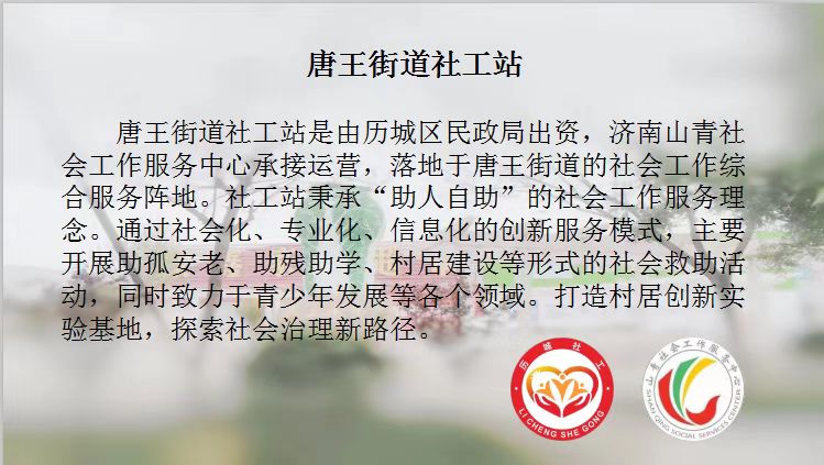 发布者:历城区唐王街道社工站点击数:280发布时间: 2022-05-19【字体: