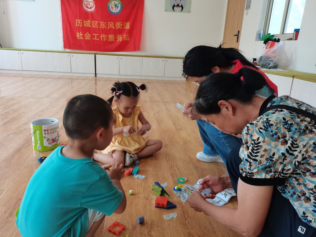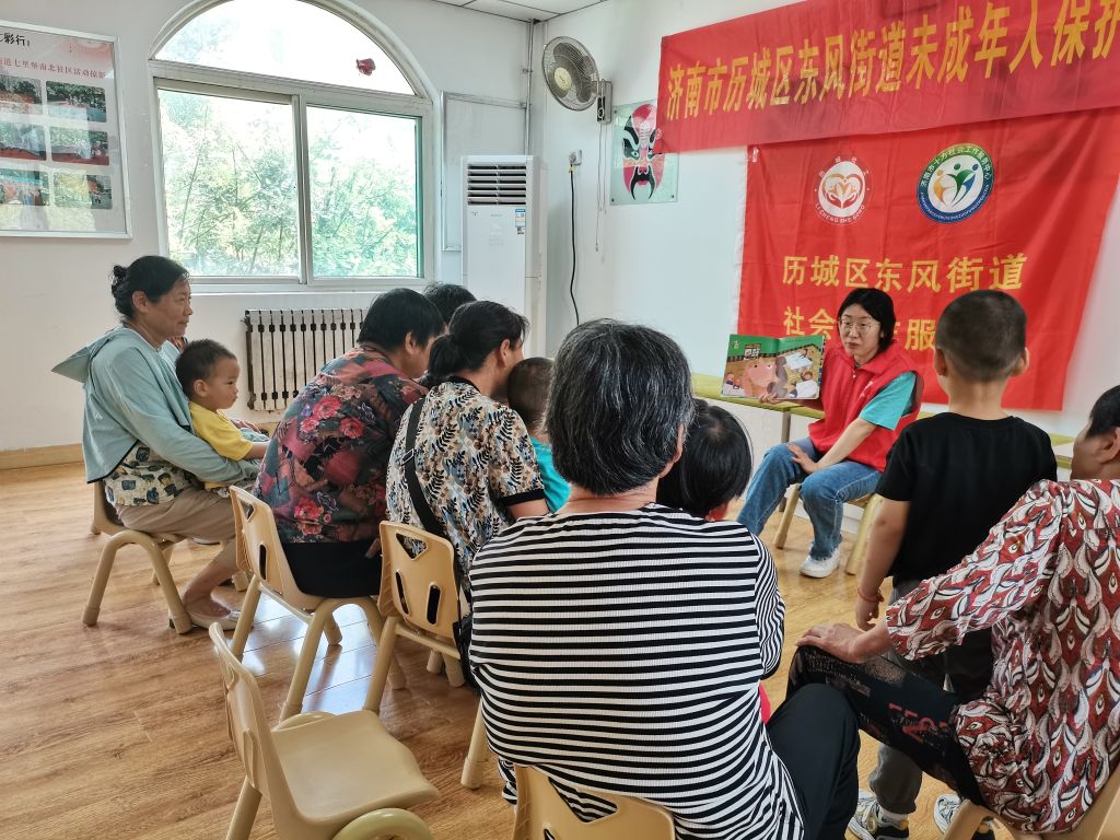 为提升辖区老年人的育儿意识、增强老年人的养育能力、促进辖区儿童的发展,东风街道社工站联合东风街道未成年人保护站及七里堡南北社区开展“我爱我家”隔代养育能力提升小组,小组包含亲子互动式阅读、亲子游戏、家长育儿课堂等内容。7月5日,第六期“我爱我家”亲子互动式阅读活动顺利开展,继续向老人们传递了互动式的阅读方法,帮助老人们成为有技巧的儿童阅读陪伴者。