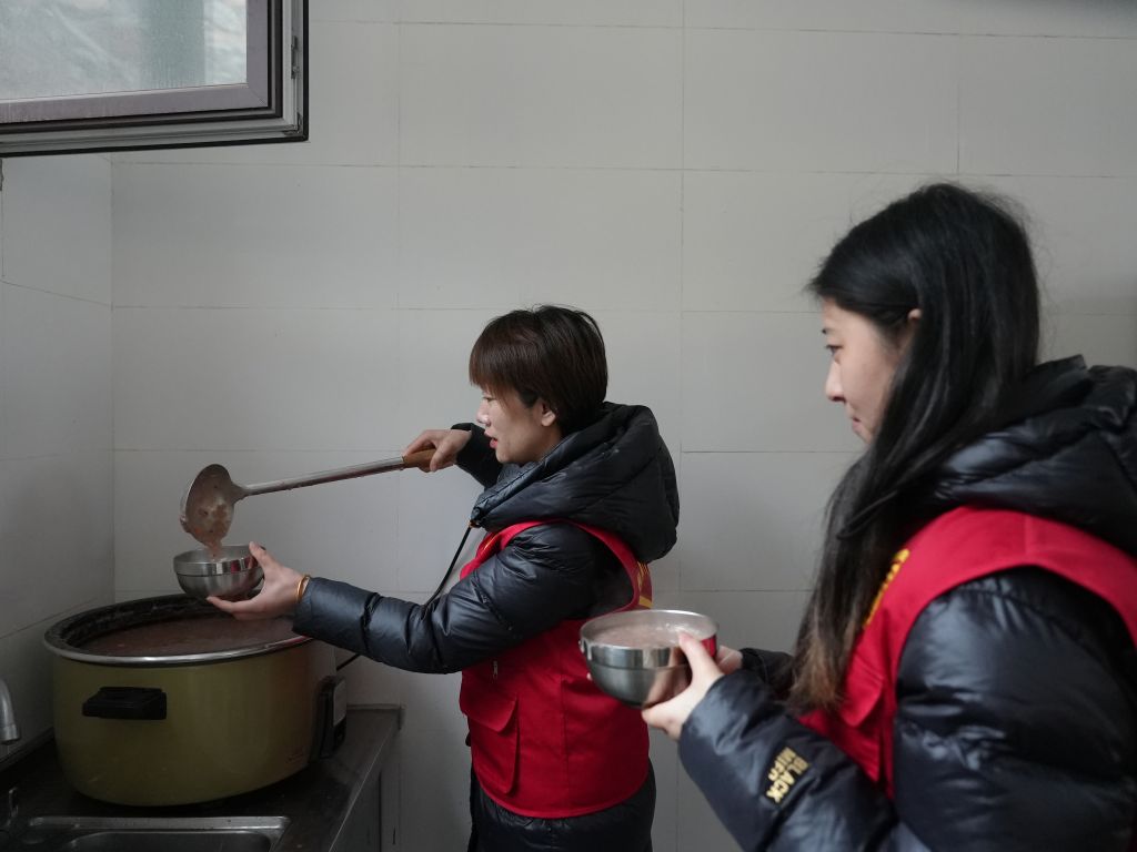 一大早,志愿者们就在厨房忙碌起来了,用提前准备好的糯米、红豆、豌豆等食材开始精心熬制腊八粥。随后,将一碗碗热气腾腾的腊八粥递到老人手中,喝到腊八粥的老人脸上都洋溢着幸福的笑容,高兴地说“腊八粥喝完之后,不仅身子暖暖的,心也是热的。感谢你们在寒冷的冬天还挂念着我们!”