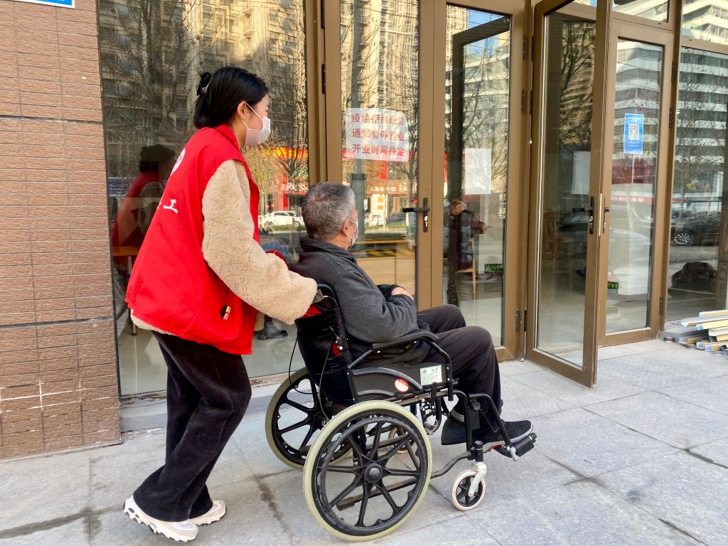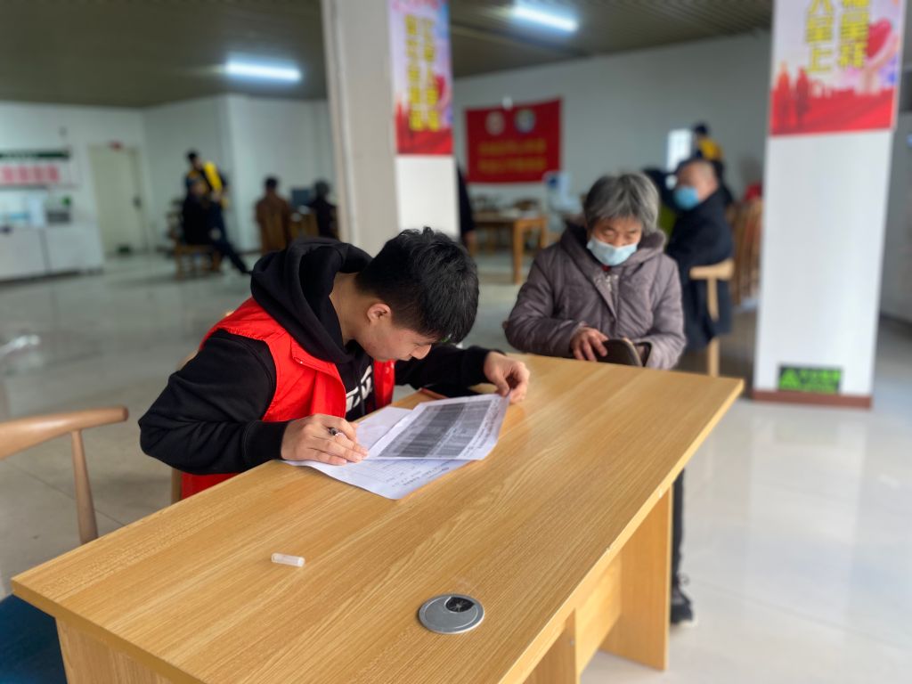 活动开始前,老年人陆陆续续来到社区,有序排起队伍等待活动开始。看到腿脚不便的老人,社工前去帮忙搀扶、推轮椅等。同时,社工为到来的老年人登记信息,一一致电未及时赶到的老年人。