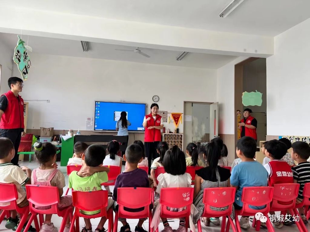 2023年9月6日,第二届预防儿童烧烫伤宣传周期间,在中国社会福利基金会烧烫伤关爱公益基金的支持下,艾山街道社工站、钢城区社工总站在艾山中心幼儿园开展“烫伤急救冲啊冲”预防烧烫伤宣教活动。