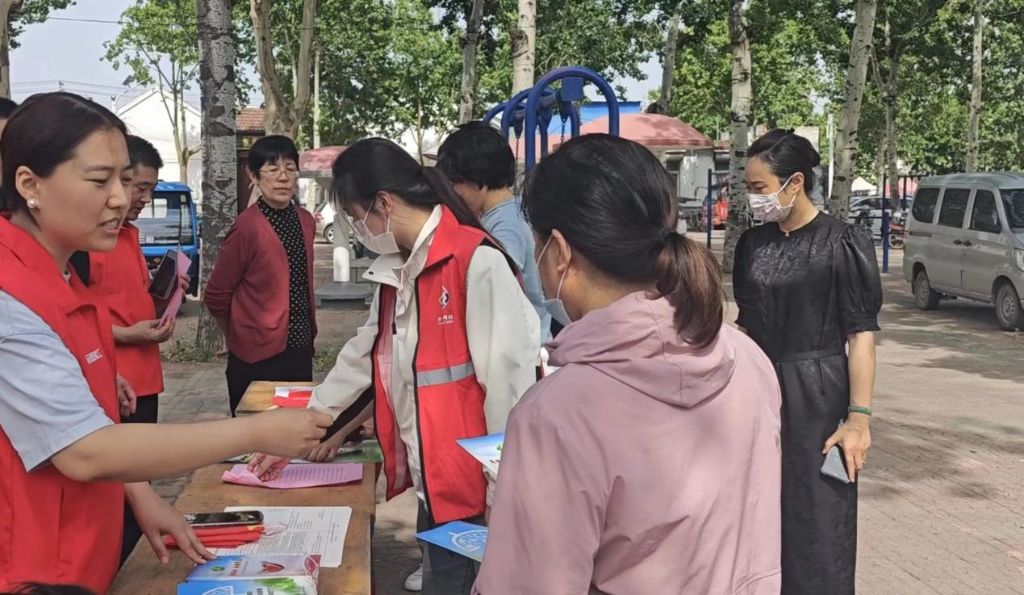 恰逢官庄大集,爱心集市活动结束后,志愿者们到大集上分发传单,宣传养老保险和社会保险政策,并为群众解答疑惑。