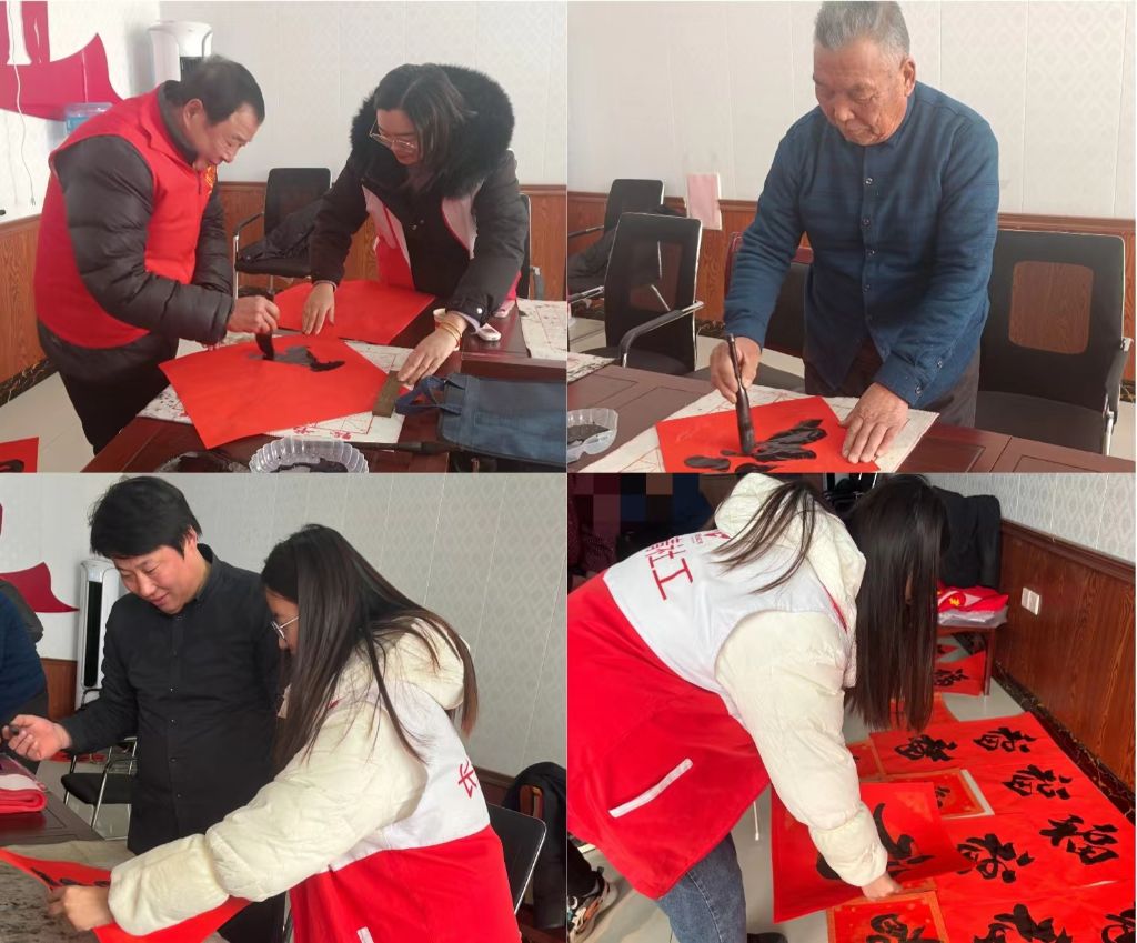 妙笔生花送祥瑞,翰墨留香迎新春。新春佳节来临之际,为弘扬中华民族传统文化,2024年2月1日上午,张夏街道社工站通过资源整合,链接退休老党员及书法爱好者,并联合街道残疾人联合会、退役军人服务站在张夏街道党群服务中心开展写福字送祝福活动。