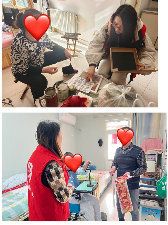 驻站社工身着“红马甲”,怀揣着满满的爱心与祝福,如冬日的暖阳,守护在困难群众身边。此次“敲门”行动,以“送福迎新”为主题,承载着对困难群众的满满牵挂。过程中,社工同服务对象面对面交谈,详细询问其目前的生活状况及需求,及时记录其面临的困境,社工耐心倾听他们的故事与诉求,并通过专业知识与方法,协助服务对象找到可行的解决方案。在来到残疾家庭赵阿姨家中时,老人们看到我们的到来,开心的合不拢嘴,为缓解赵阿姨因照顾残疾老伴带来的心理压力,社工特意准备了暖心手工,陪阿姨共同制作,阿姨握着社工的手不时的表达着浓浓的感激之情。