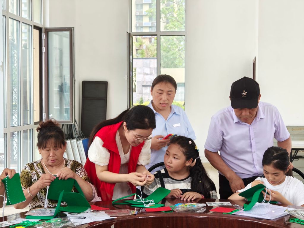 为引导辖区居民追寻红色记忆,丰富居民对红色文化的认知,传承红色基因,厚植爱国情怀,2023年7月13日上午,郭店街道社工站联合郭店街道公共文化服务中心开展“小小‘红军包’,装满爱国情”手工缝制活动。