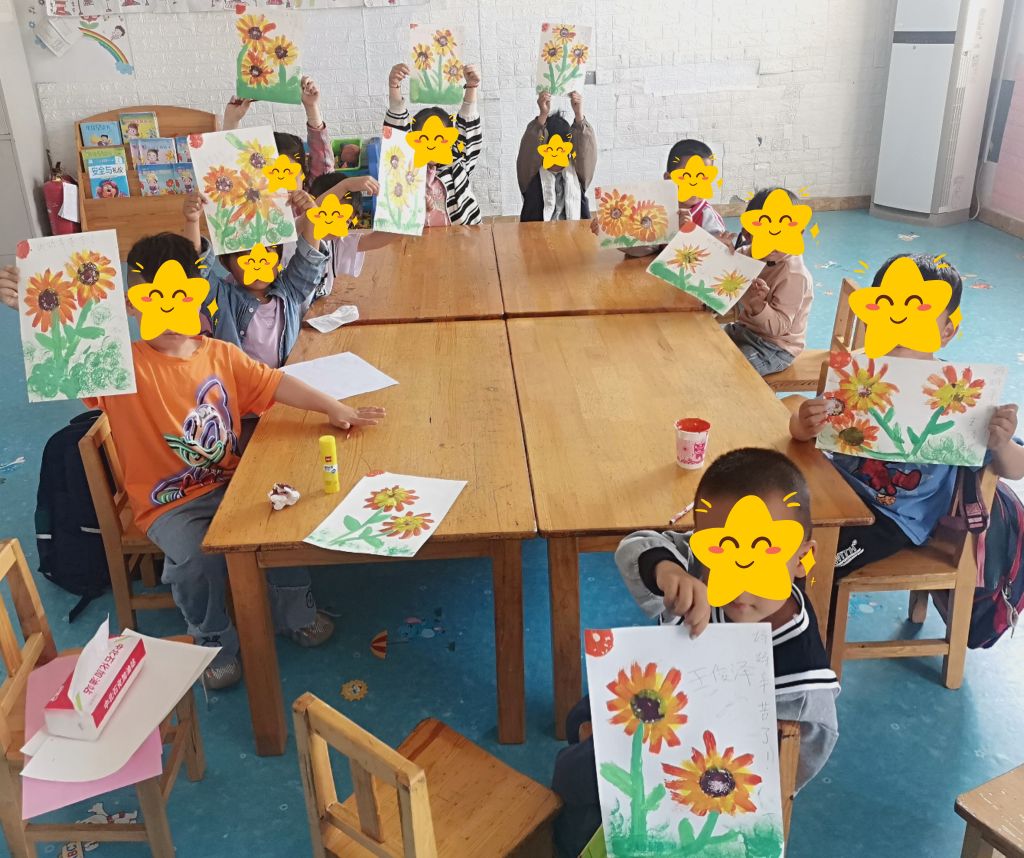 在活动现场,社工首先向孩子们介绍了母亲节的由来。随后社工把孩子们分成4组,给他们分发了绘画制作所用的材料,并讲解绘画的上色技巧和注意事项,然后社工示范了手工绘画的过程。孩子们认真地听、仔细的做,很快就投入到活动中。孩子们在社工的帮助下,认真的绘画涂色,先后画出了向日葵底盘、花瓣、茎、叶,然后为作品涂上漂亮的颜色,并写下想对妈妈说的话。最后,一幅幅美丽的向日葵就展现在大家的面前,孩子们看着自己亲手绘画的花朵,稚嫩的脸上绽放出喜悦的笑容。