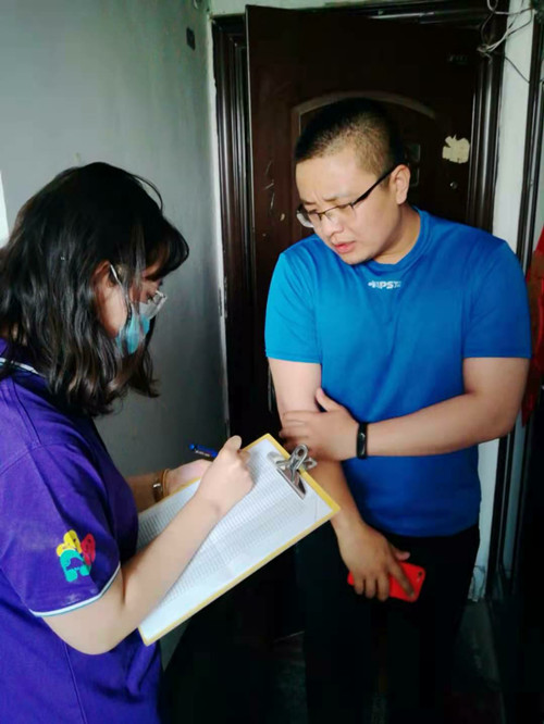 (社工走访居民家里,了解疫苗接种情况)