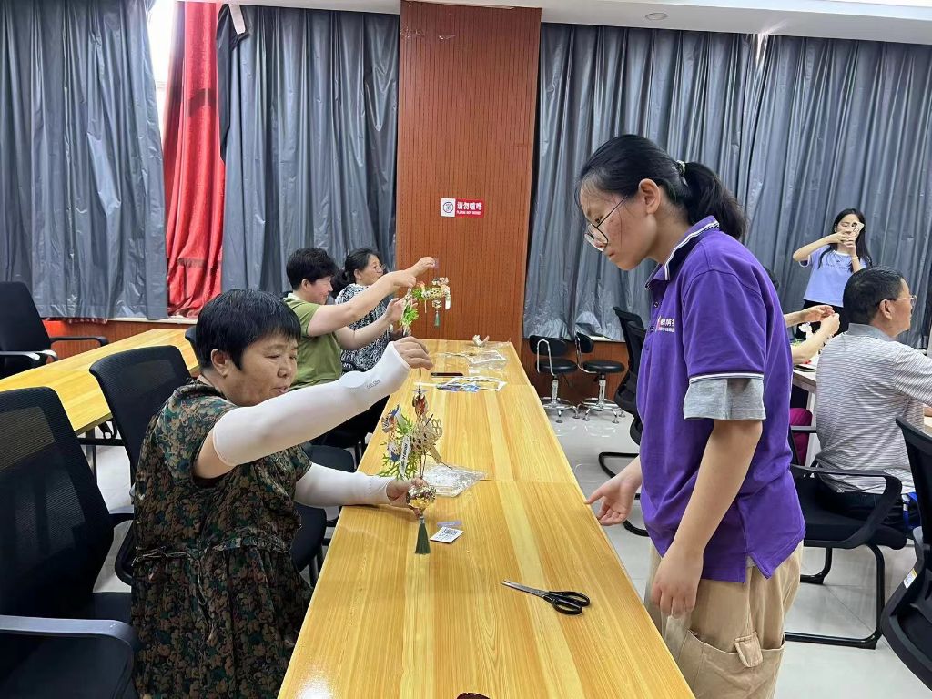 图2:社工与老年人一起制作端午挂件