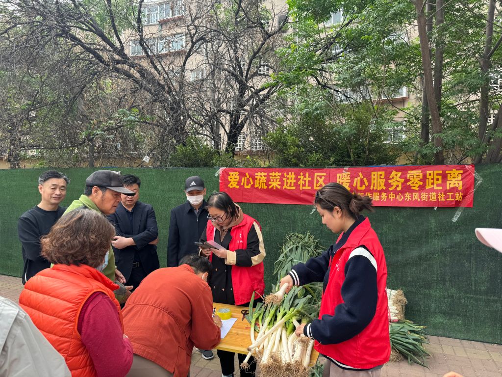 4月29日,东风街道社工站链接山东硒来旺农副产品有限公司,联合化纤社区开展了以“爱心蔬菜进社区,暖心服务零距离”为主题的蔬菜赠送活动。旨在让居民们免费吃到更安全、绿色、新鲜的蔬菜,进一步增进居民与社工的关系,提高社区凝聚力,促进社区和谐,增强社区活力。