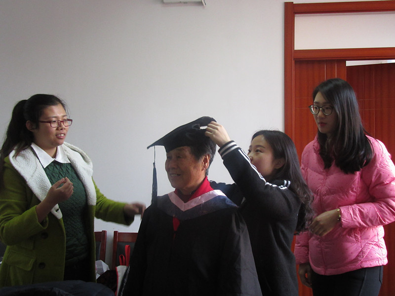首先,由志愿者为老人穿戴学士服和学士帽。老人们都非常惊喜,没想到自己到了老年还能穿上学士服,纷纷进行合影留念。