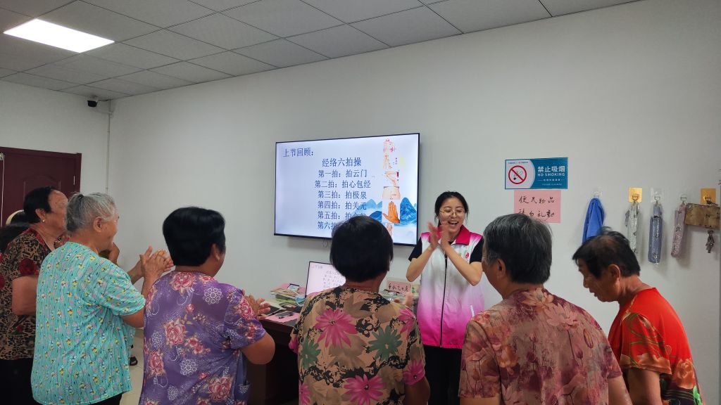 本次教育小组共计五节,第一节主题为“开心见面会”,社工通过自我介绍+破冰游戏等方式,加深组员之间的认识,密切组员之间的沟通交流,增强组员之间的凝聚力。第二节主题为“经络六拍操 舒经络促健康”,在本节活动中,社工通过“珠行千里”游戏活跃课堂氛围,拉近组员之间的距离,通过“经络六拍操”的学习,向组员介绍身体穴位的具体位置及养生功效,带领组员一起动起来,拍经络,促健康!小暑至,夏季养生正当时。带领全体组员观看养生讲座视频《夏季话养生》,邀请组员分享养生心得和独家养生小妙招,共享夏季养生知识,健康过夏日。第三节活动主题为“健康养生 健康身体吃出来”,本节活动通过向组员介绍夏季老年人养生菜谱、夏季老年人饮食注意事项等养生知识,结合夏季农村应季蔬果,向老年人展示蔬果的做法,丰富老年人餐桌,通过学习夏季老年人饮食注意事项,帮助老年人精准避雷夏季饮食误区,健健康康、舒舒服服过夏天!第四节活动主题为“健康手指操 双手动起来”,本节活动的重点带领组员共同学习《健康手指操》,通过活动手指及手部穴位,锻炼手部灵活性的同时强心健脑,一举多得。第五节活动主题为“快乐886”,在社工的带领下,大家一起回忆小组活动的点点滴滴,共话学习心得和成长,处理好小组离别情绪,虽然小组活动结束,但健康的养生知识和养生习惯会一直陪伴她们度过健健康康、快快乐乐晚年时光。
