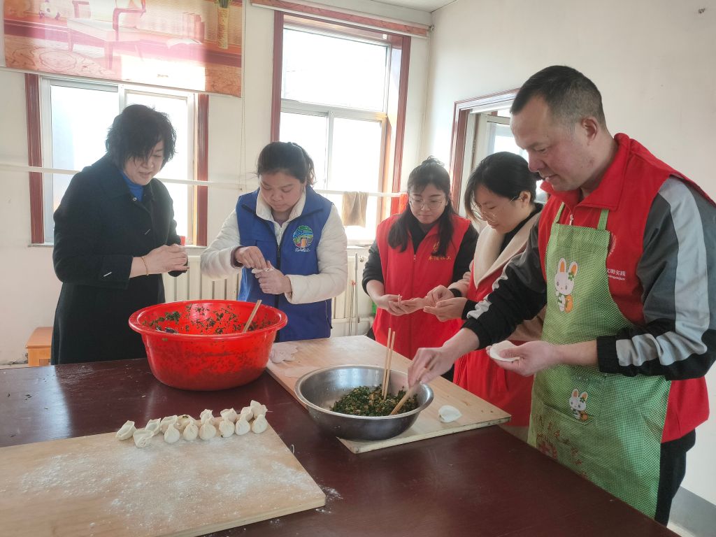 一大早,志愿者们陆续来到托养中心,有的摆好面案,有的和面,有的擀皮,有的包包子、饺子,有的蒸包子、下饺子,志愿者们分工合作,有条不紊,干劲十足。老人们看到热闹场面,也主动包起来,高兴处,有的老人家用《炊事班》的一首歌谣让现场气氛更加热烈。大家一边包一边分享着生活中点滴,传递着爱心,传递着文明。经过一上午的努力,一个个热腾腾的大包子摆上了老人们的餐桌。